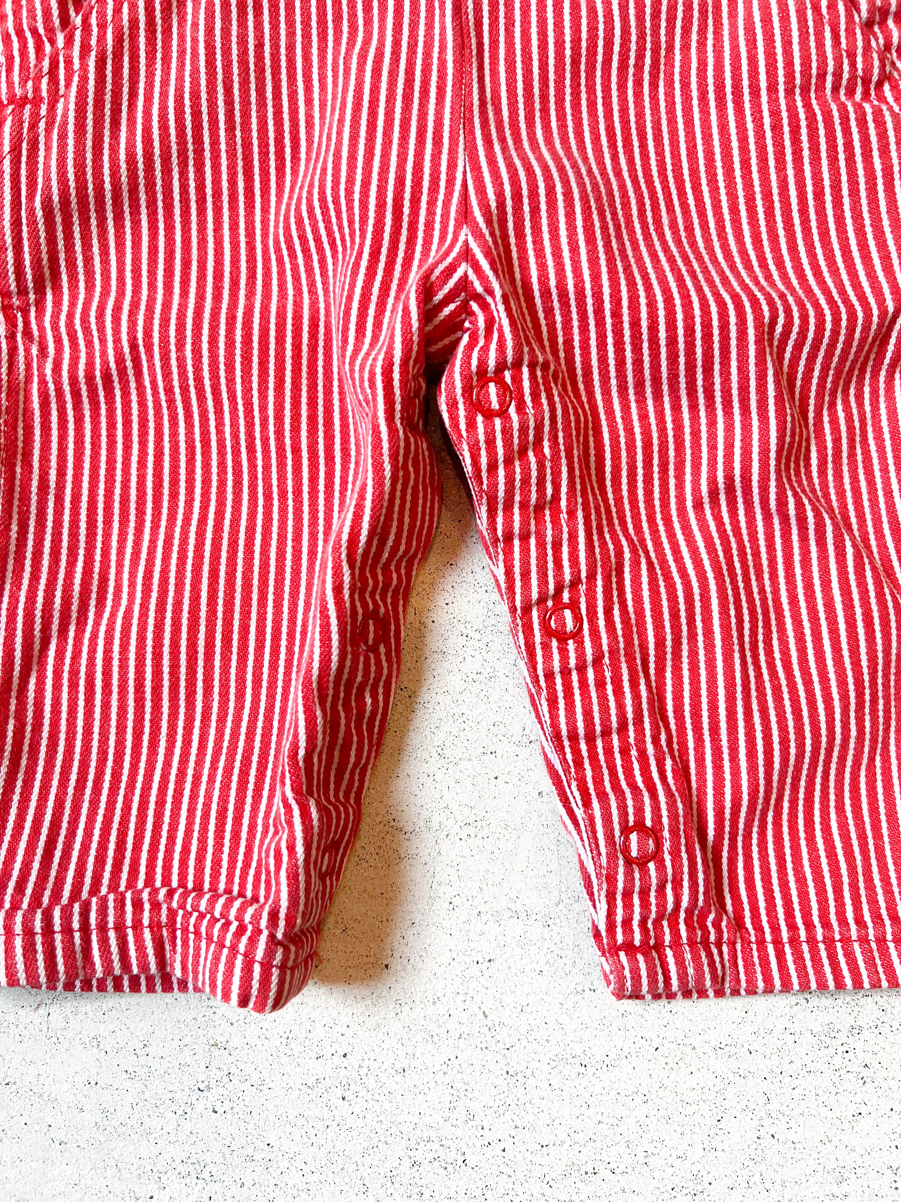 【50-60cm】VINTAGE 80'S オシュコシュ 赤ヒッコリー オーバーオール【b193】