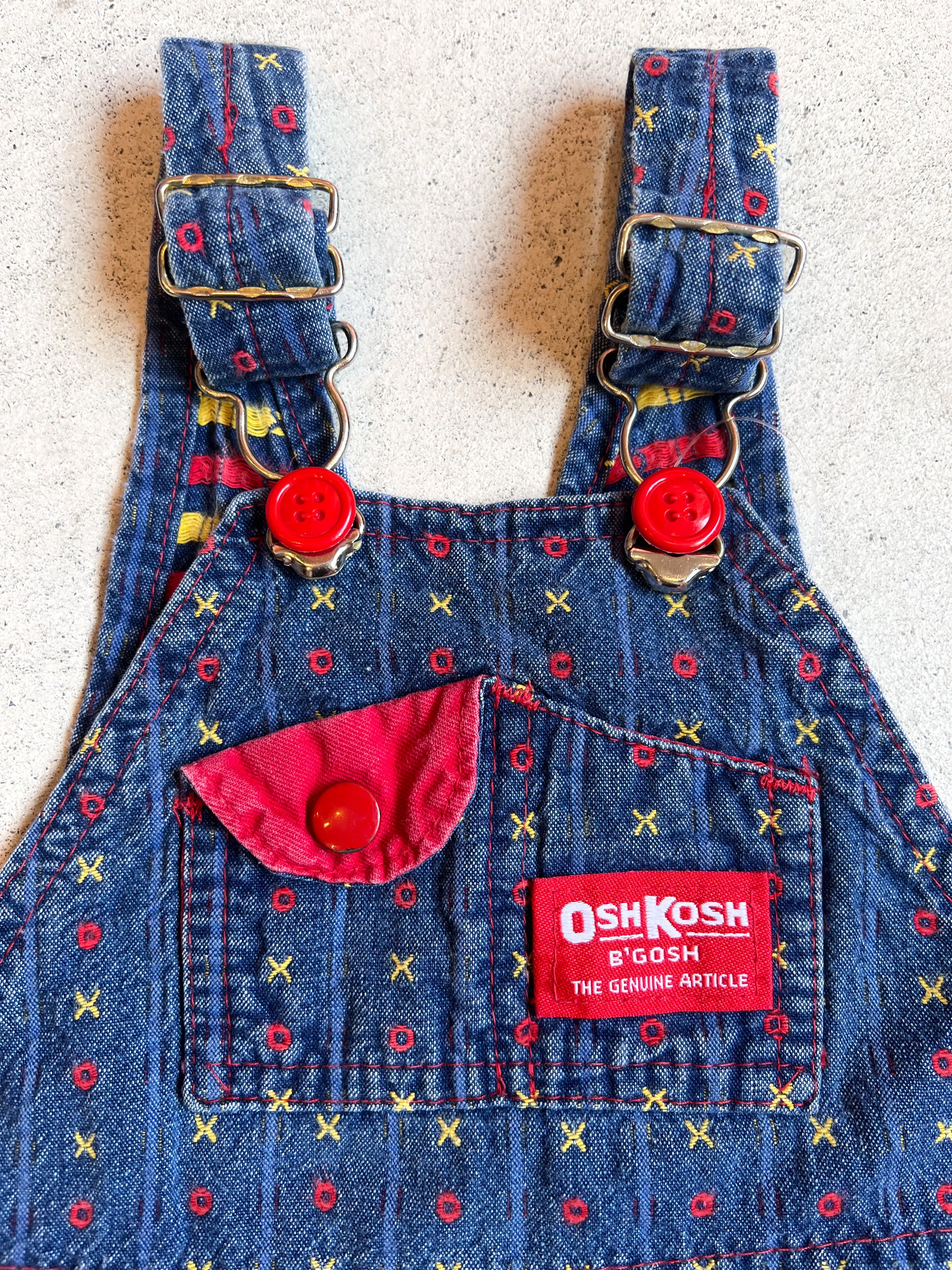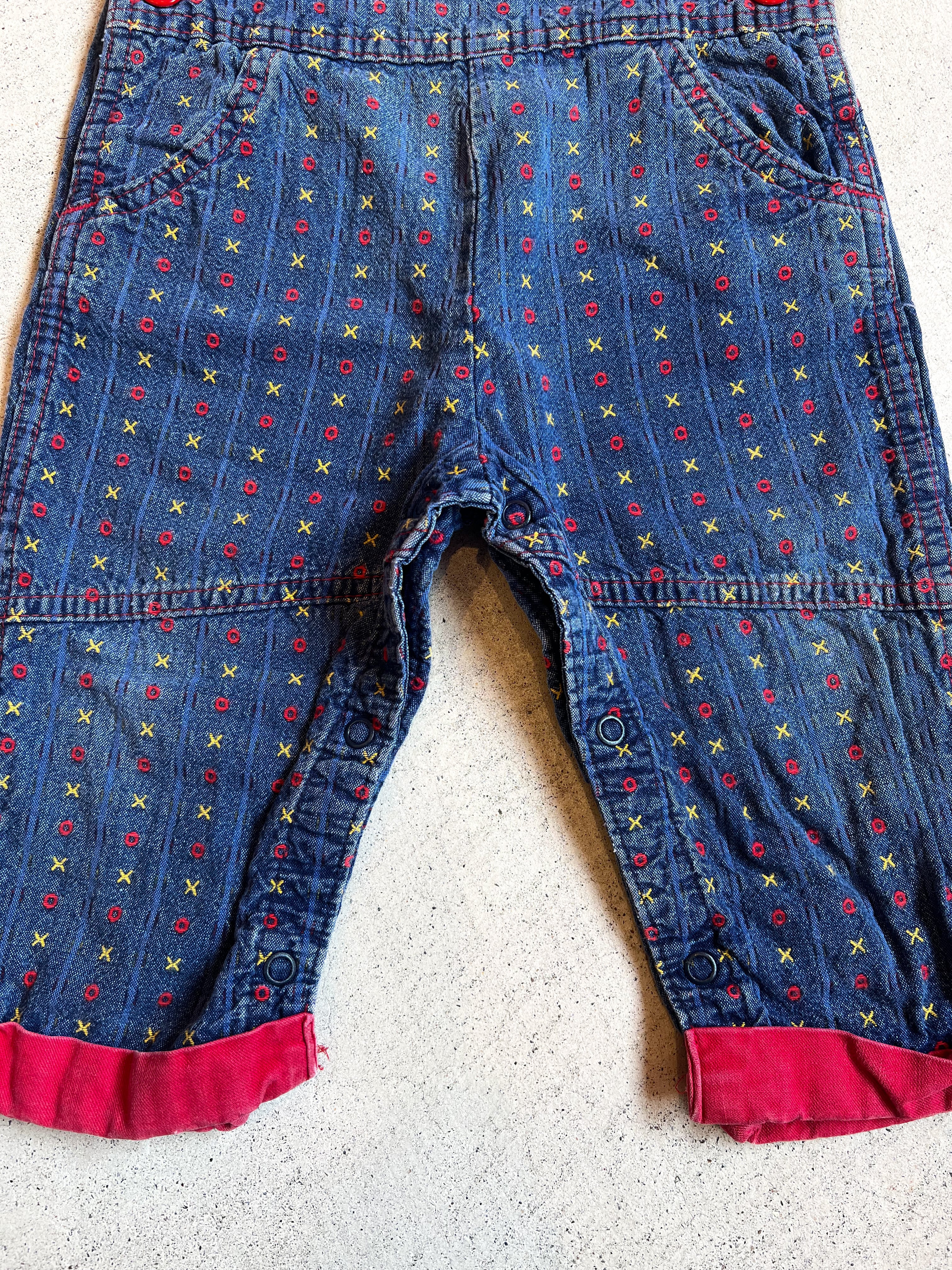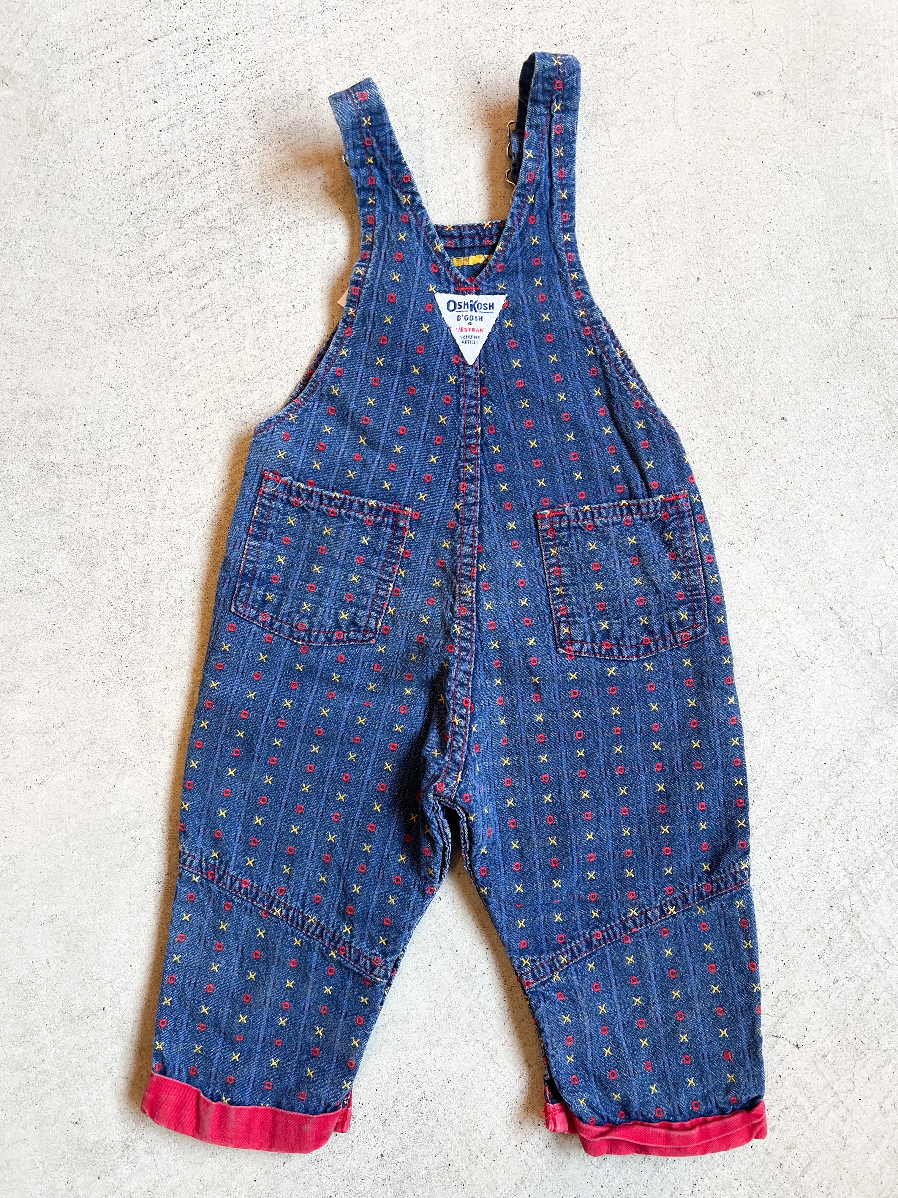 【90cm】VINTAGE 80's オシュコシュ デニム○×柄 オーバーオール【10012】